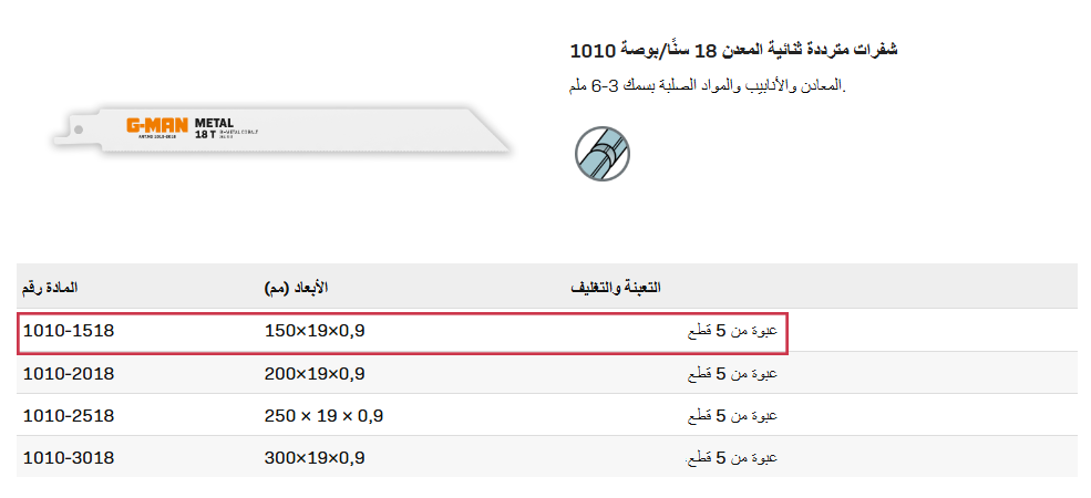 ريشة منشار ترددي سويدي للحديد 15 سم